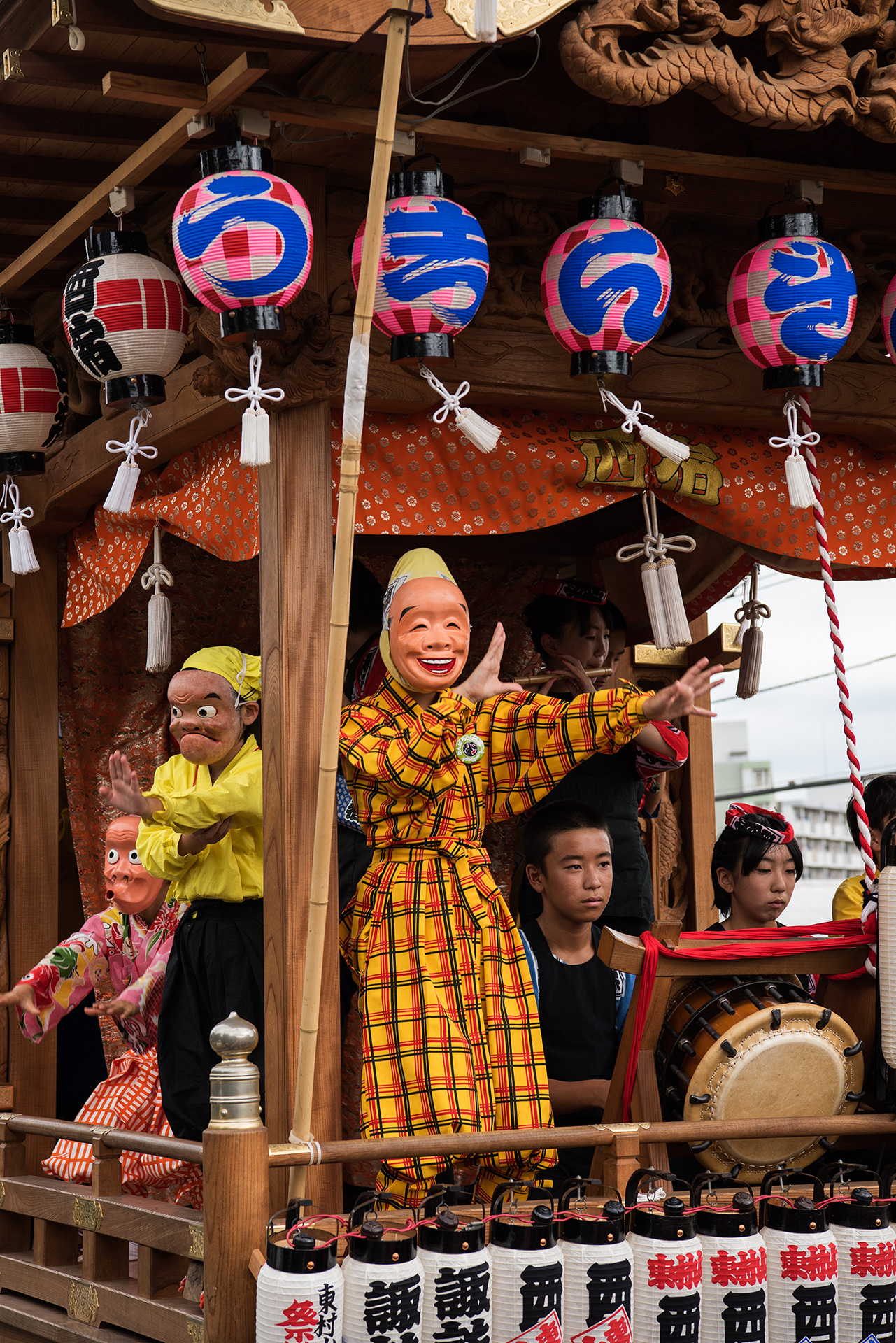 子供が山車に乗り、お面をつけて踊る昼間。ハイライトのヌケの良さに驚いた。脚立の上という不安定な撮影にVRが活躍する。