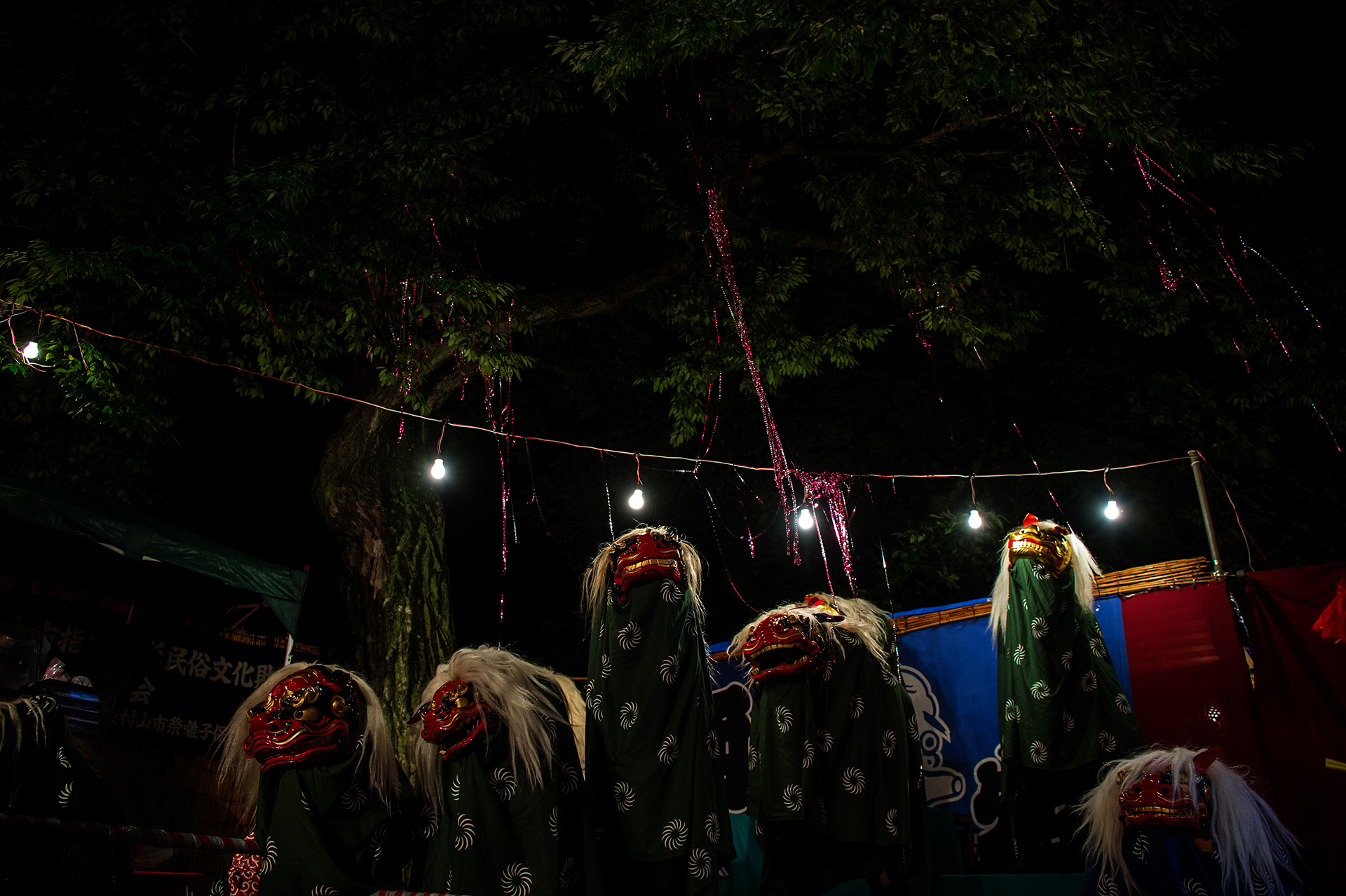 関東の獅子舞は、ひとつのお獅子にひとりだけ入って舞う。電球の灯りが入っても、ナノクリスタルコートによりフレアやゴーストは出ない。