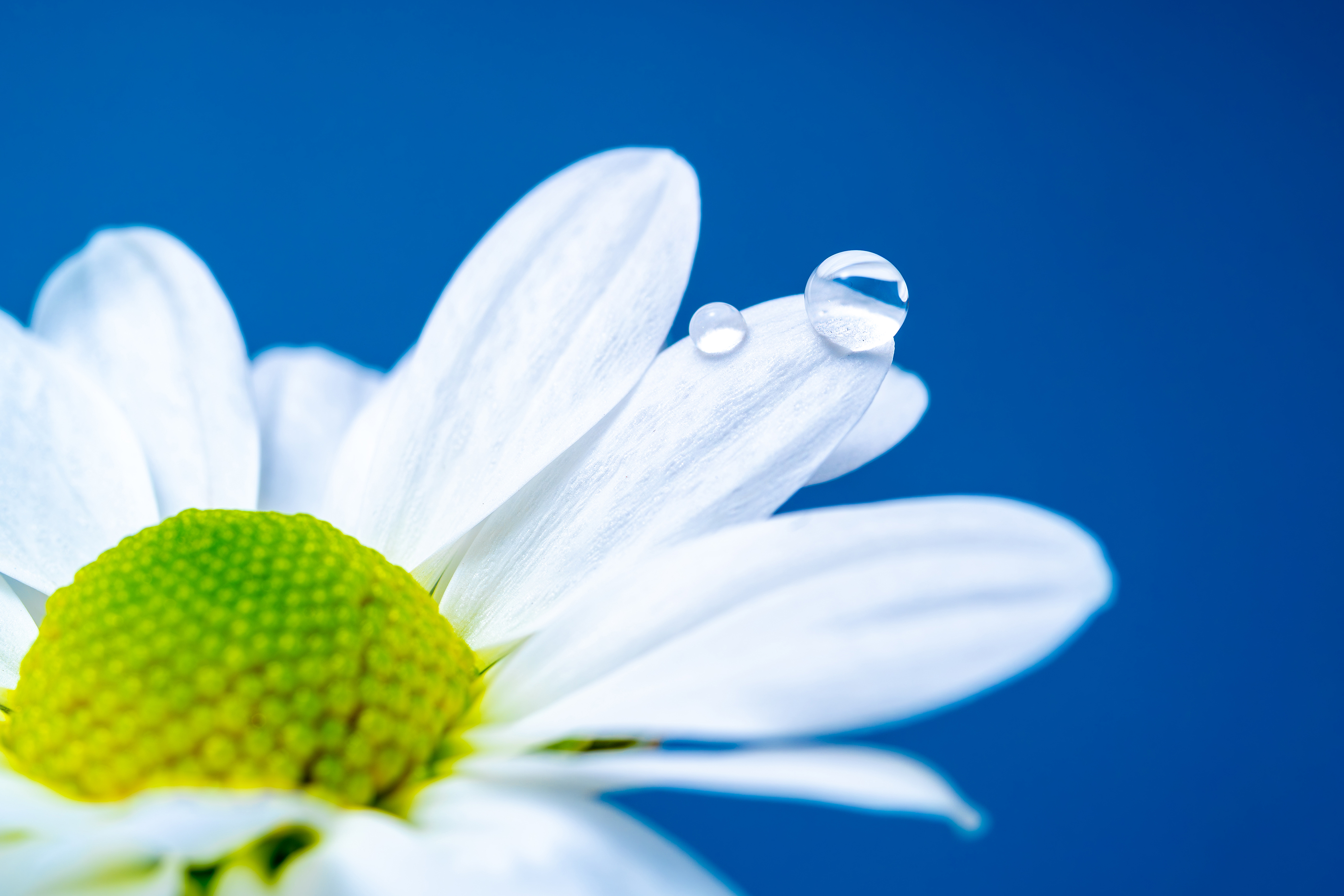 深夜、自宅の窓を閉めエアコンを切った無風状態の環境を整えた。慎重に花弁に乗せた滴をマイクロレンズでのぞくと、それはまるで宝石のよう。最大撮影倍率0.67倍を活かすことで、肉眼で見るよりも存在感のある滴に仕上がった。