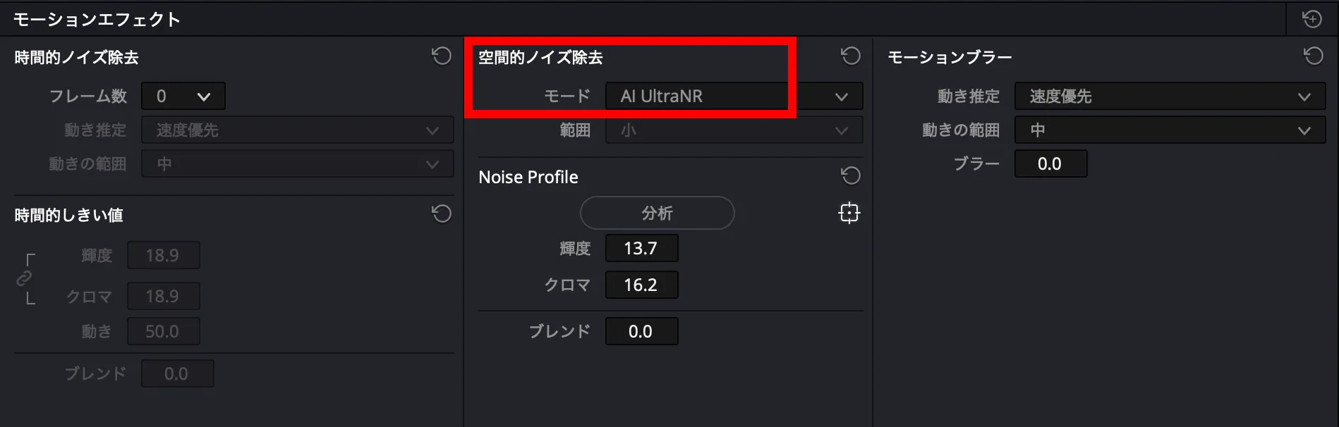 「煙の動きがあるから、時間的ノイズ除去より空間的ノイズ除去の方が自然に仕上がる