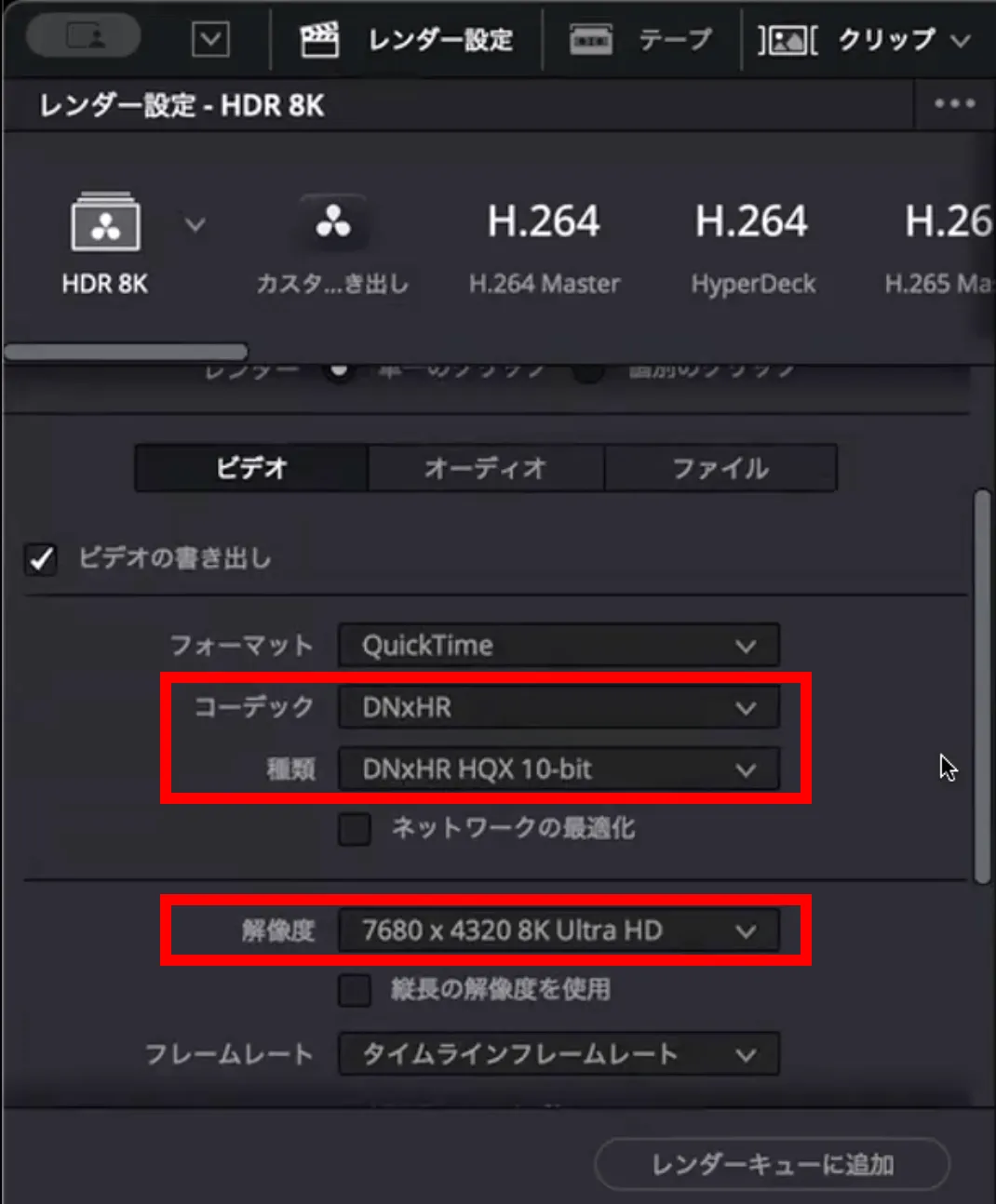 YouTubeでHDRで見せるための書き出し時は、10bitのコーデックを使用する 必要があります。