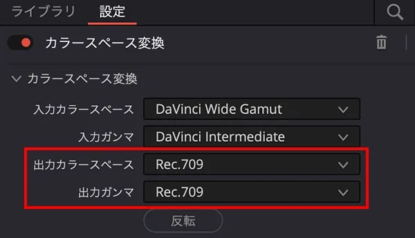 いきなりRec.709に変換するのではなく、最初のノードでDaVinci Resolveでの作業用のカラースペースとガンマに変換した後で、微妙な色調整を施していき、最後のノードで作業用の色域から最終の視聴環境であるRec.709に変換するという方法もあります。