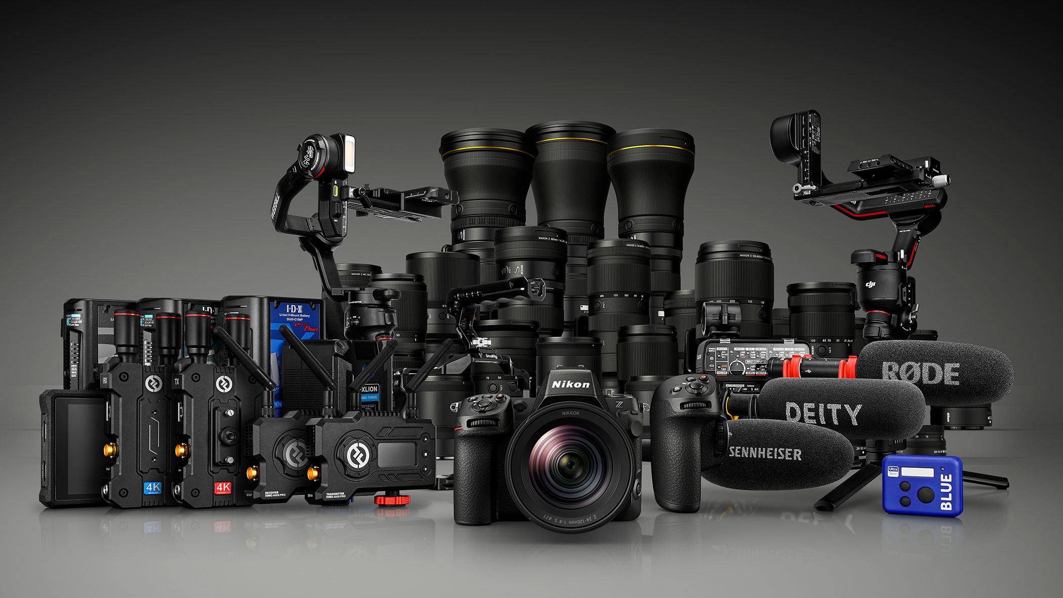提携メーカーの対応アクセサリーとの組み合わせにより、Z 8のクリエイティビティーはさらに広がります。SmallRig(ケージ)、DJI、ZHIYUN(ジンバル)、DEITY、RØDE、SENNHEISER、TASCAM(音響機器)、HOLLYLAND(ワイヤレス送信機)、FXLION、IDX(Vマウントバッテリー)。ニコンは、これら多くのユーザーが利用する映像関連アクセサリーのブランドとコラボレーションしています。また、Bluetooth®で複数の対応機器のタイムコードを同期できるATOMOS UltraSync BLUEにも対応。Z 8と各提携メーカーが提供する信頼性の高いアクセサリーを組み合わせて使用することで、Z 8は、創造性の幅をさらに広げることができます。