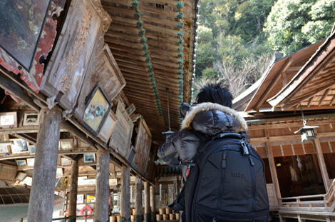 ワイド端の16mmで絵馬殿を撮る藤村先生