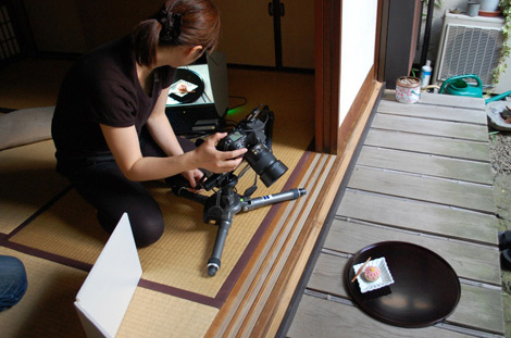 菊を象った和菓子なども撮影