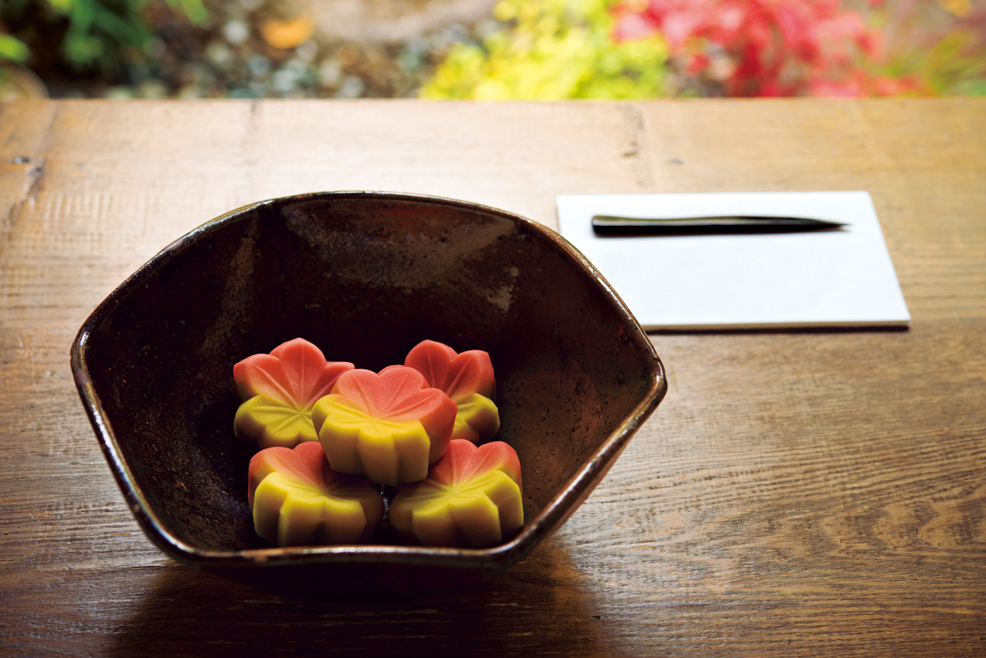 他にも、塗りの盆に載せた白磁の菱皿に