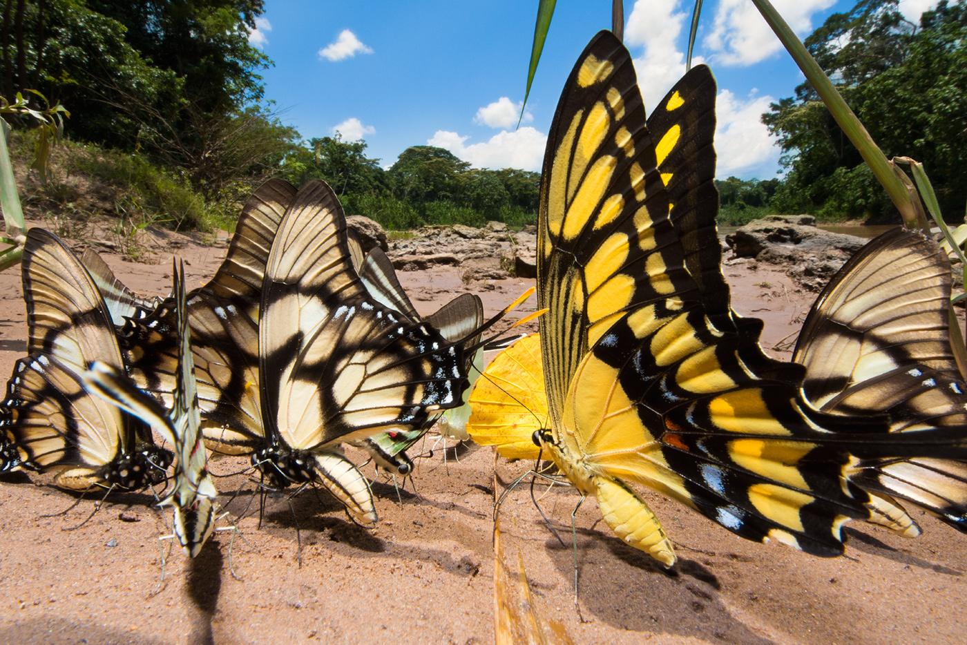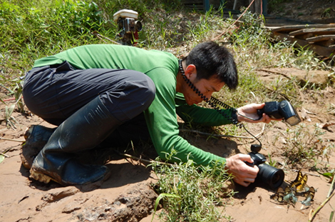 チョウの群れの撮影に集中する