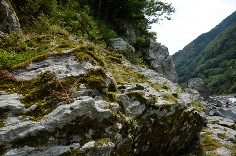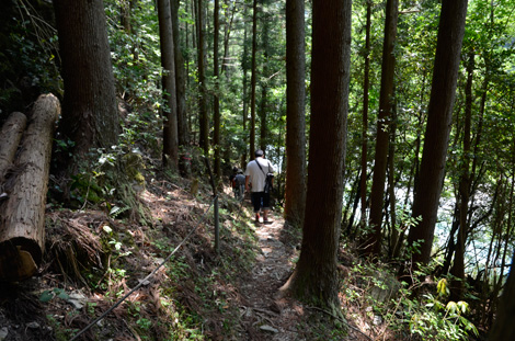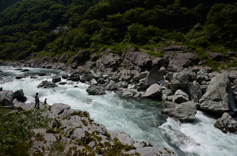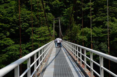 つり橋を渡る、眼下は足がすくむほどの高さ