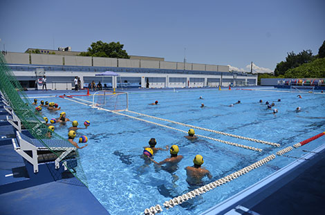 快晴の空を映したような真っ青なプール