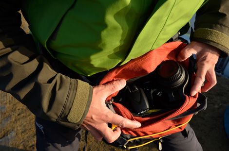 撮影後、ウエストポーチに収められた