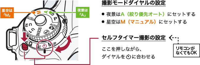 - リモコンがなくても、セルフタイマーでブレ対策が可能。