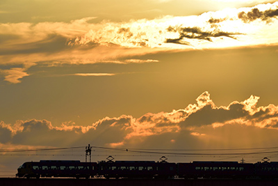 ■ 今や日本で唯一となってしまった寝台特急「サンライズエクスプレス」。夜のしじまを抜け、遠くかの地で朝を迎える夜行列車は、旅情にあふれ、鉄道ファンのみならず多くの旅行愛好家からも羨望のまなざしを受ける。撮影地は伯備線の備中川面~方谷。岡山県の中国山地の山間だ。初夏の朝日が柔らかく霞む清々しい空気の中、「サンライズ出雲」がやってきた。逆光に輝く姿がまた神々しい。乗客は車窓を流れゆく、見知らぬ風景を楽しんでいるだろうか。それともまだ夢の中だろうか。様々な思いを巡らせながらファインダーでその姿を追った。山間に響き渡った夜行列車の走行音がトンネルに消えゆくと、やがて、早鳴きのセミたちが歌い始めた。