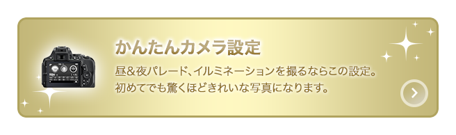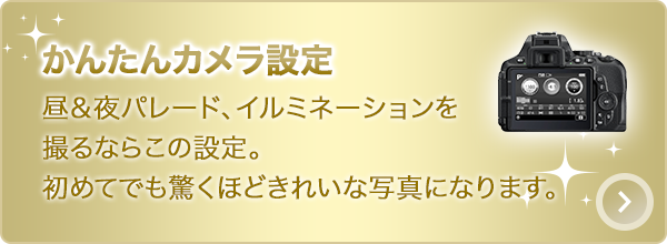 お気に入りのキャラクターもパレードもイルミネーションだって、コツさえつかめば大丈夫。ニコンのカメラで、これまでと違う写真かんたん・きれいに撮ってみませんか?