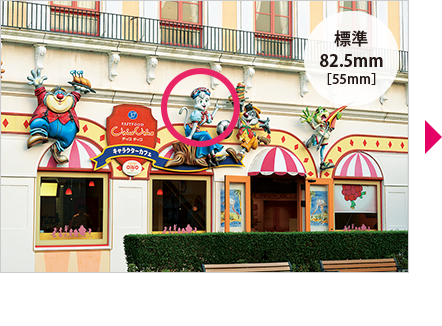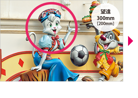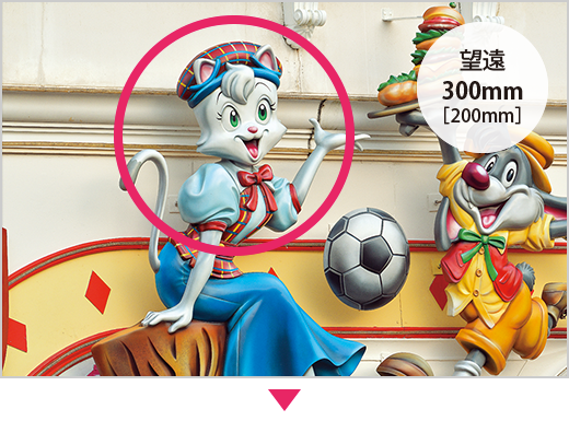 超望遠ズームがあれば、撮影のベストポジションを確保できなくても大丈夫。離れた場所からでも、お気に入りのキャラクターにぐっと迫れます。