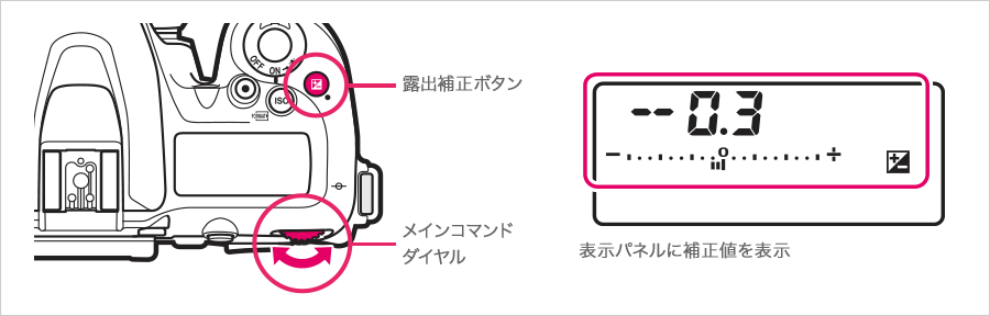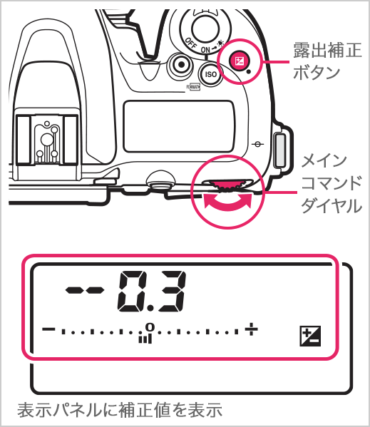 露出補正ボタンを押しながらメインコマンドダイヤルを回す