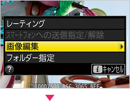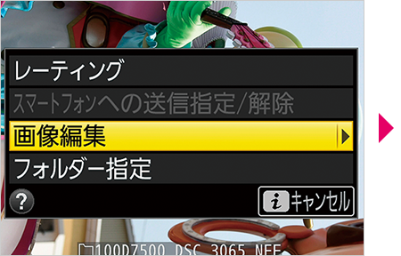 撮影後に、明るさ(露出)やホワイトバランスなどを変更できます。編集した画像は元画像とは別に保存するので、いろいろな表現にトライしてみましょう。