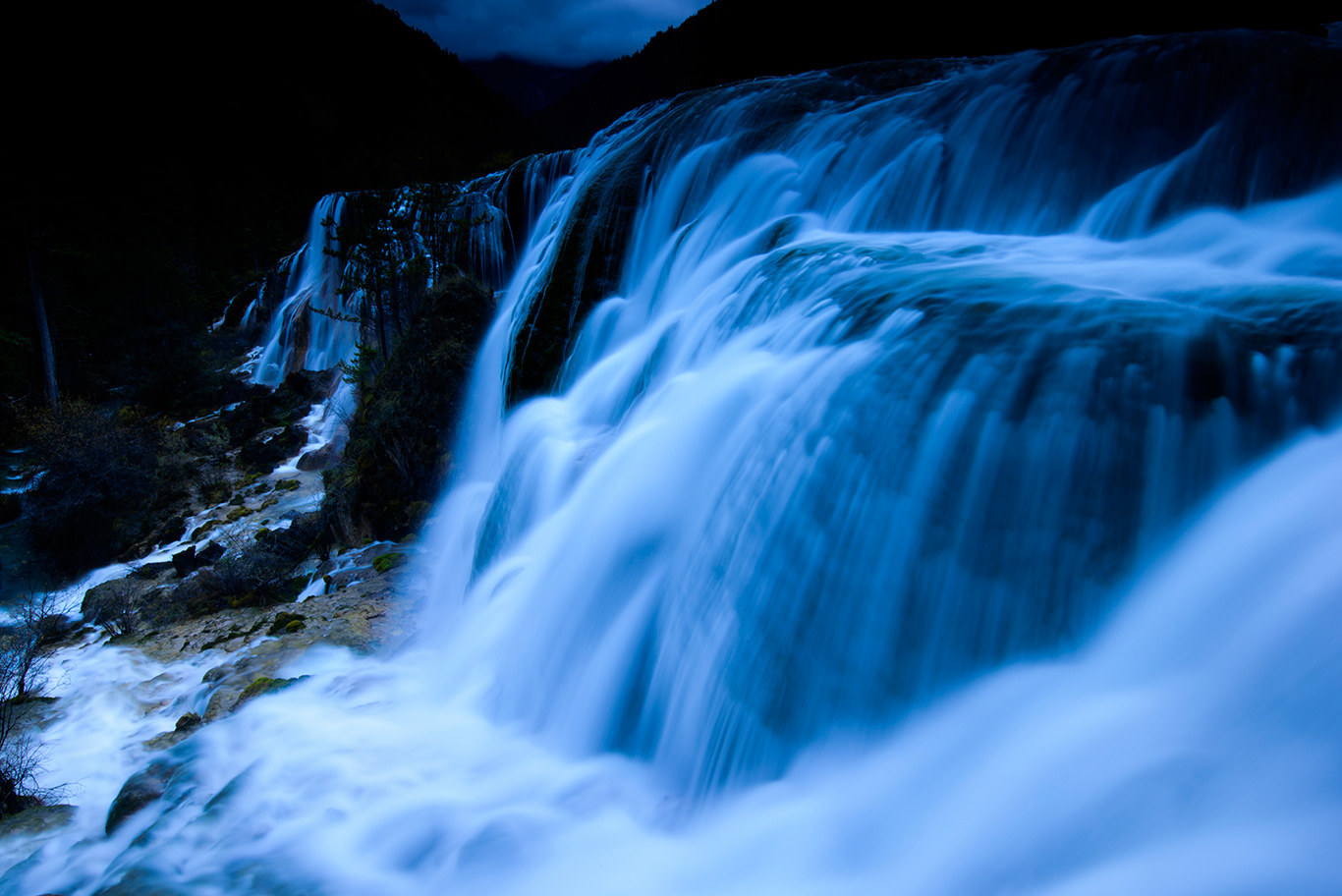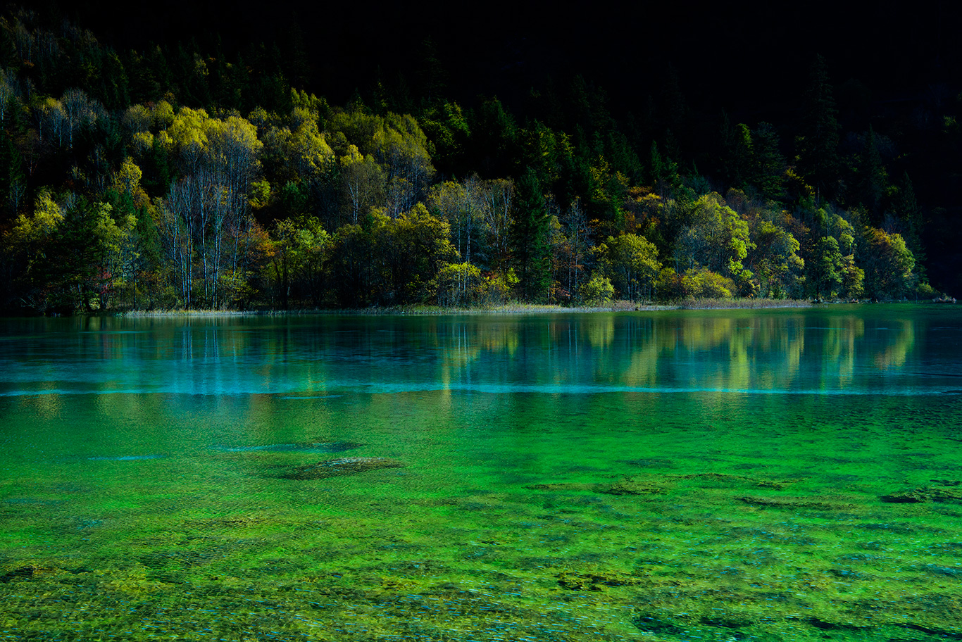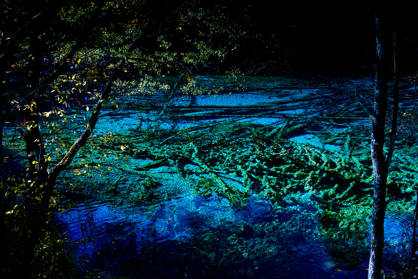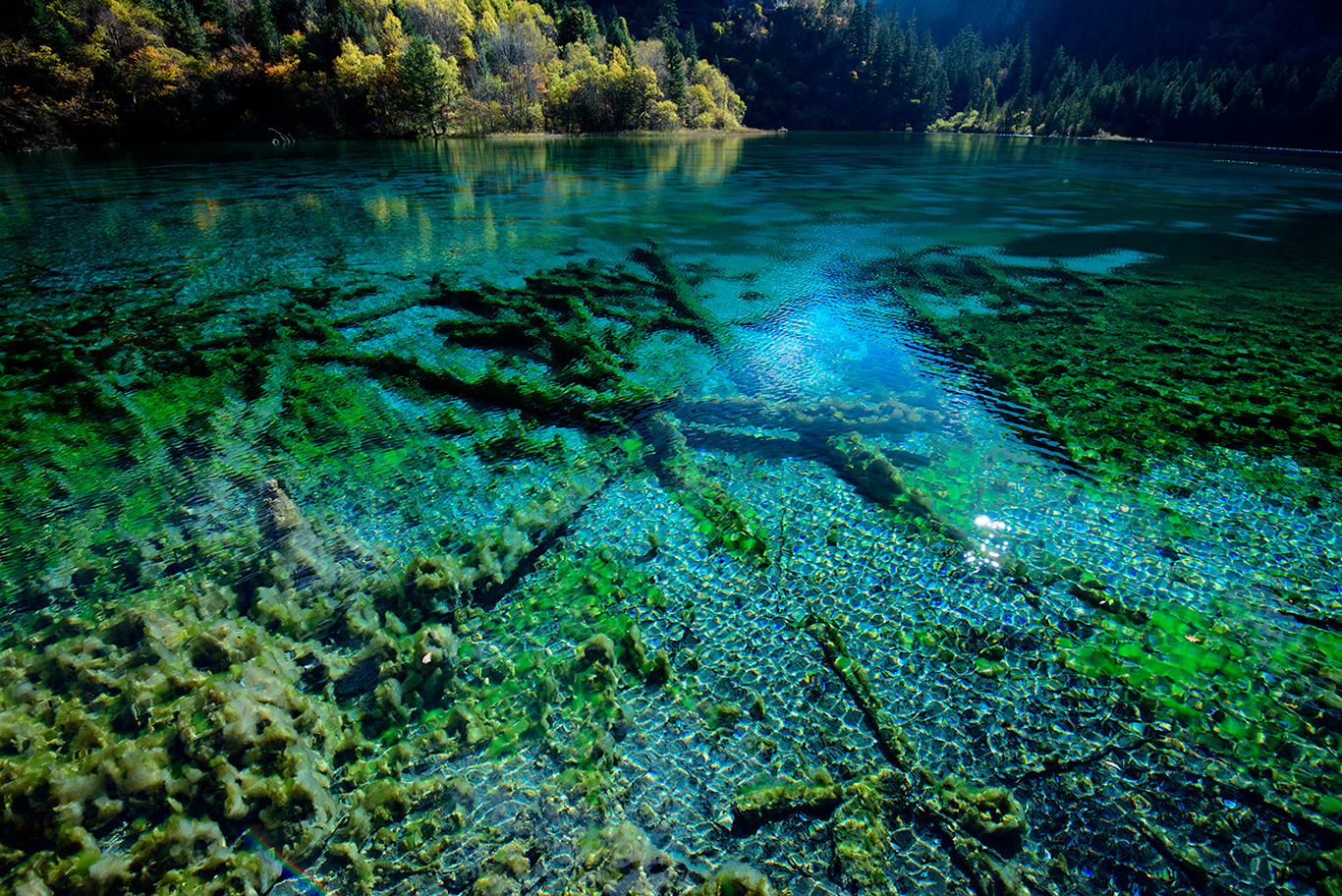 九寨溝に行ってみたい、と思った直接のきっかけは、この神秘的なブルーの水だった。これまでいろんな国の海で、深いブルーから白に無限に近い明るいブルーまで、さまざまな種類のブルーを撮影してきた。けれど、この地の写真をあるサイトで見たとき、それまで見たこともない色をたたえる水が、はっきりと僕を誘(いざな)ってきているのを感じた。