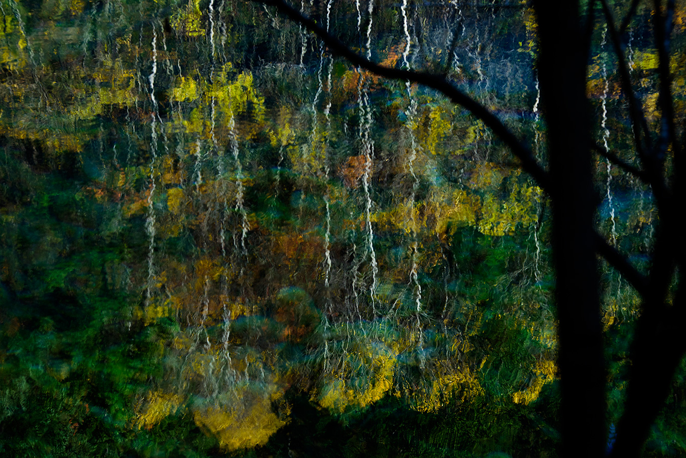 そんな湖面に紅葉した葉の色が反射し、無限の色の重なりとなって目に飛び込んでくる。自然の色の多彩さにあらためて驚かされた。