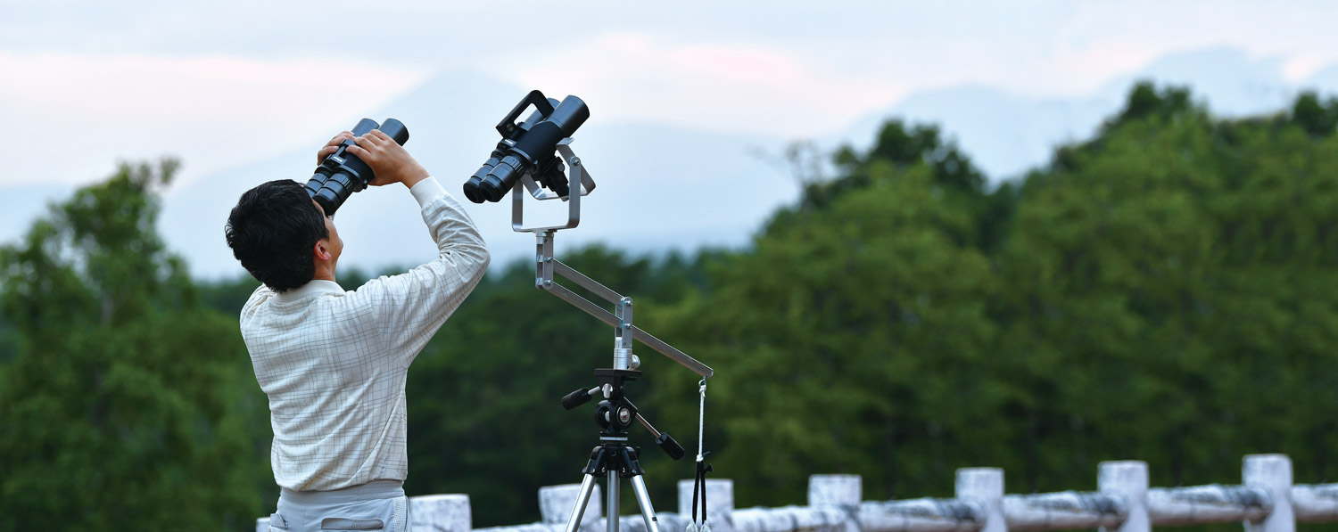 「良い双眼鏡は、こういう夕闇が迫る薄暮の時間帯に見たとき、微妙な明暗の判別とかで違いが出るんですよ。収差の有無だけでなく、ヌケの良さや、色がどう出るのかもポイントですね」。双眼鏡について語り出したら止まらない、所有台数が70台以上という自他ともに認める双眼鏡マニアの石石石さん。WXとの出会いは2016年のジャパンバードフェスティバル(千葉県我孫子市)で見た試作機だ。当時、天文ファンの間では「こんなすごい双眼鏡が本当に発売されるのか?」と疑問視されていたが、石石石さんは「翌2017年はニコン100周年、創業時の主力製品は双眼鏡なのだから必ず世に出るはず」と確信していた。発売と同時にWX 10×50を発注、そして“手持ち双眼鏡派”ということもあり、迷わずWX 7×50も追加発注。数ある所有双眼鏡の中で、今はこのWX2台が星見の主役になっている。