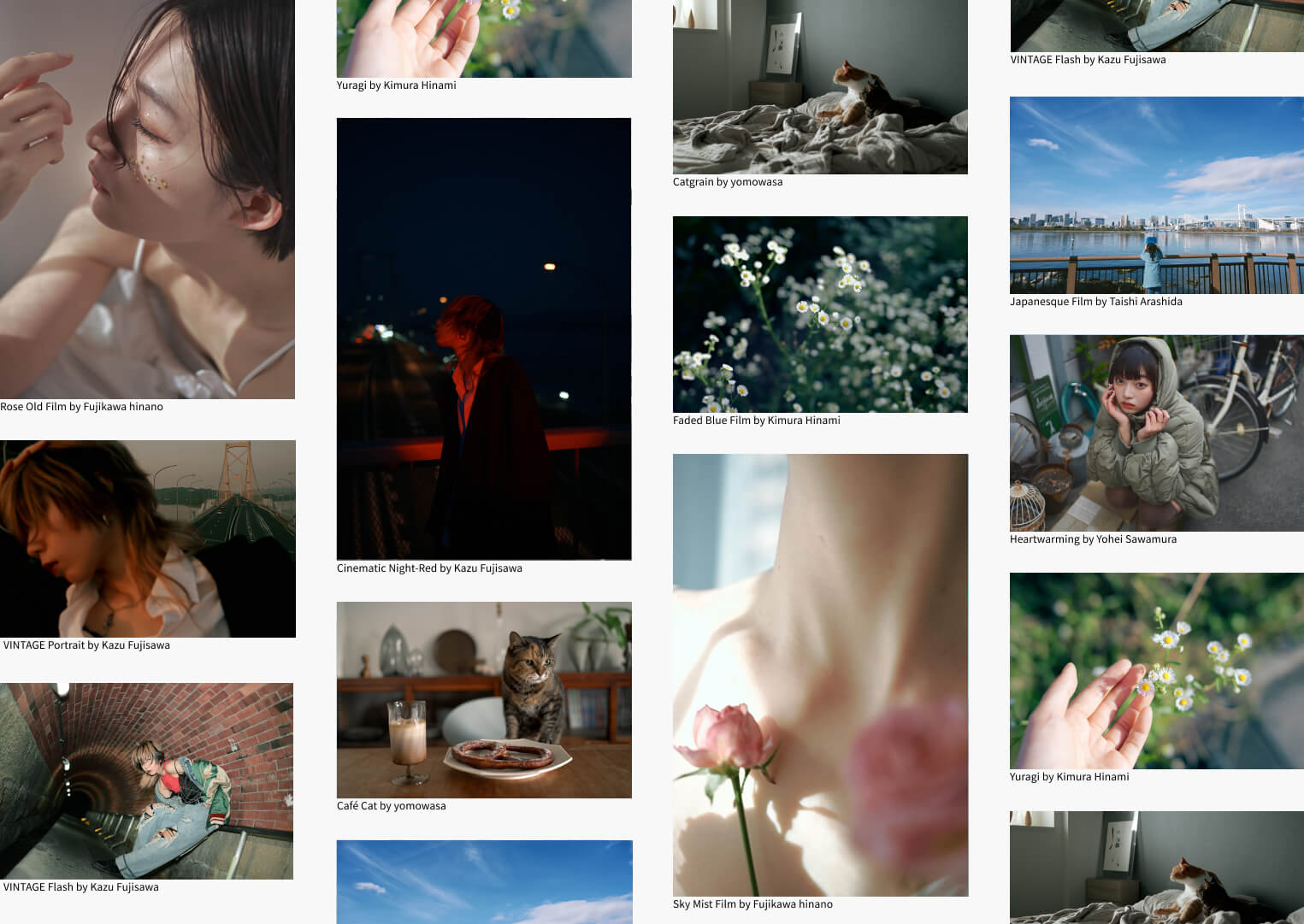 私の写真スタイルをベースに、ヴィンテージライクで深みのあるレシピに仕上げました。個性と汎用性を兼ね備え、日中はもちろん夜のポートレートや喫茶店などの屋内でもマッチします。レトロな場所やファッションの撮影で使っていただきたいです。