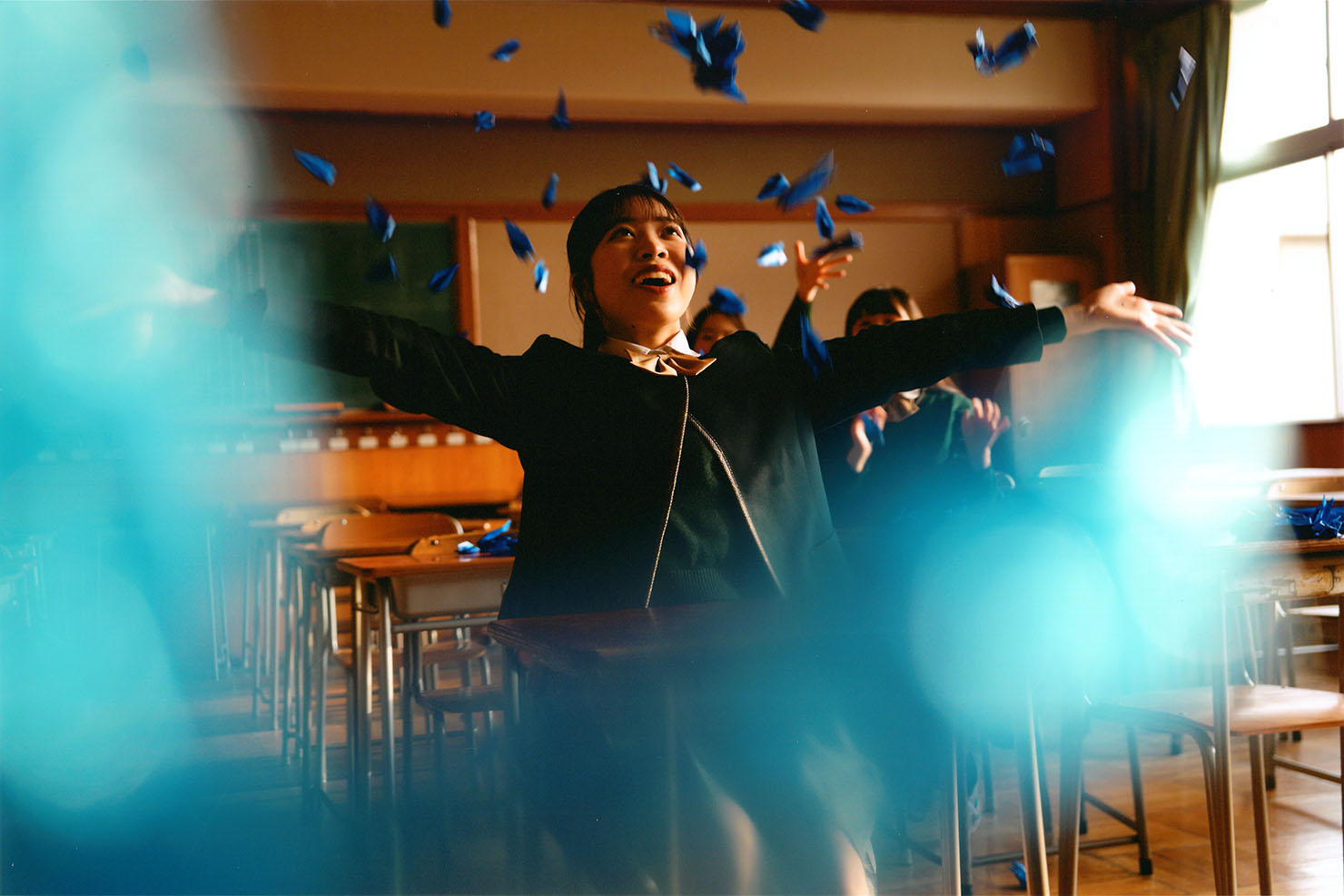 「楽しみながら撮影したんだろうな、ということがよく伝わってきます。キラキラとした瑞々しい雰囲気が、散らばった青い折り紙とマッチしていますね。まさに今しか撮れない、というような作品ではないでしょうか。ただシャッターを切る、ポーズを決めてもらう、というだけじゃなく、1枚の写真として完成させるためのいろいろな工夫が、色の作り方やボケの出し方から感じられます。そういう意図が伝わってくるのもすごくいいなと思いました」(秋山)