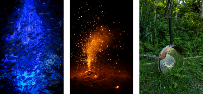 「〈RGB〉は、1年生ながらコンセプトの立て方が素晴らしいです。緑だけ人工物のカーブミラーが目立ってしまっているので、そこは自然なもので揃えてもよかったかもしれません。また、並び順もRGBに合わせることを意識できたらもっとよかったです」(秋山)