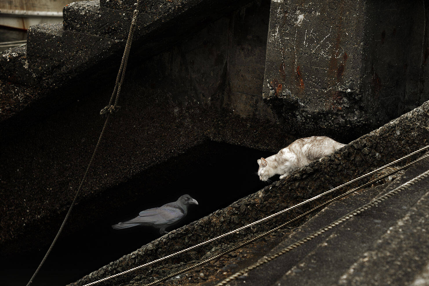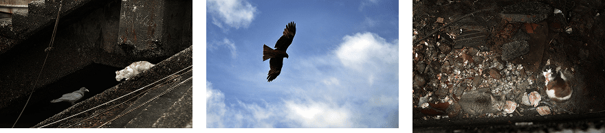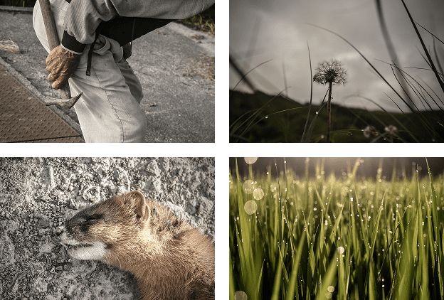 「〈一触即発『生きるとは』〉は、シンプルな構成ながら非常に物語性があります。空と地上、それぞれの場所で動物たちが絶妙な均衡を保って生きていることがストレートに伝わってきますね。構図にも工夫があり、上下の視点を使い分けることで両者の関係性や生きる環境の違いが際立っています。1枚ずつでも力がありますが、3枚並ぶことでより深い意味が立ち上がる良作です」(熊切)