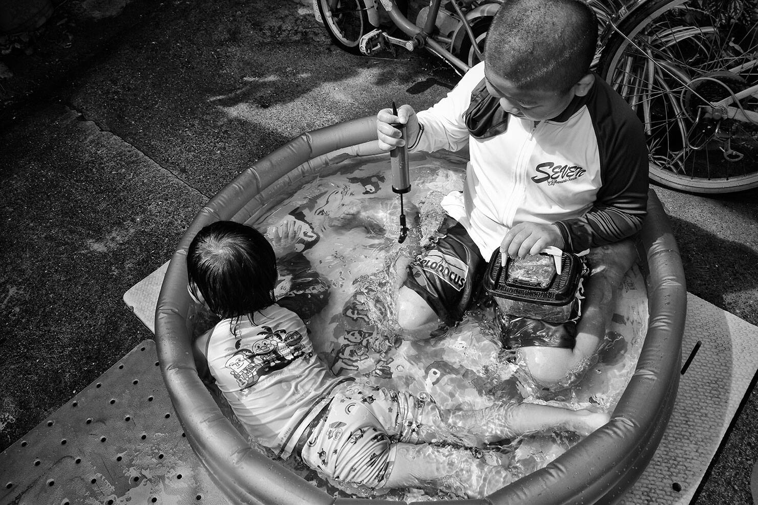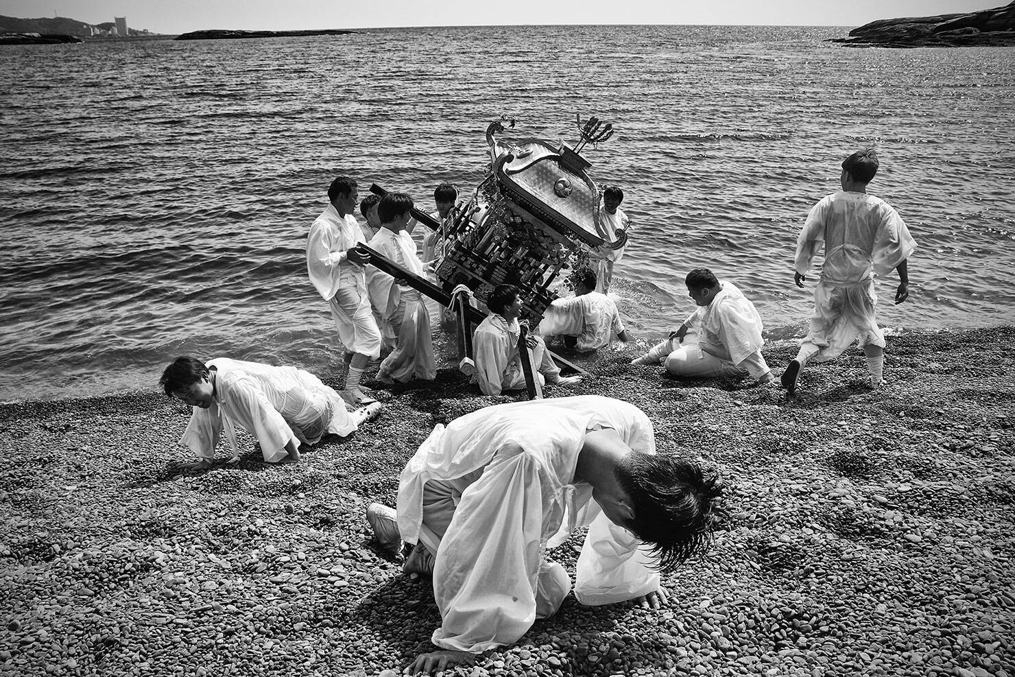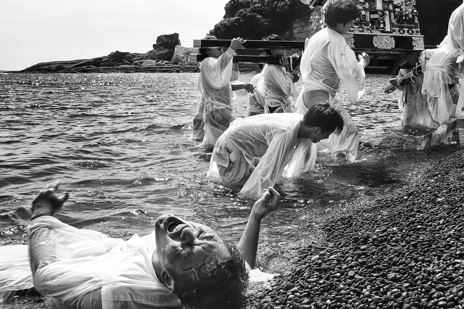 「〈お祭りの昼〉は、祭りの熱気を間近で捉えた、迫力あるワイドレンズの使い方が印象的です。荒々しさのある大人たちとよくここまで距離を詰めましたね。そのおかげで迫力と見応えのある構図になっています。プロでもここまで踏み込むのは大変です」(熊切)