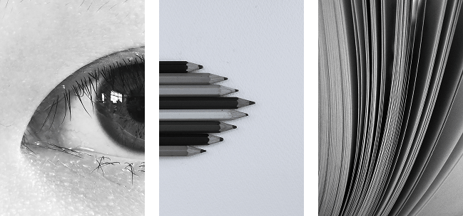 「〈Girl〉は、パーツを組み合わせて人に見立てる発想のおもしろさに驚かされました。明るく柔らかなモノクロにすることで、実際には目元の一部しか見えていないのに、その人物像を想像させる絵作りになっています。さらにカラーでは出せない一体感も生まれています。こだわって試行錯誤したことが伝わる完成度の高い作品です」(秋山)