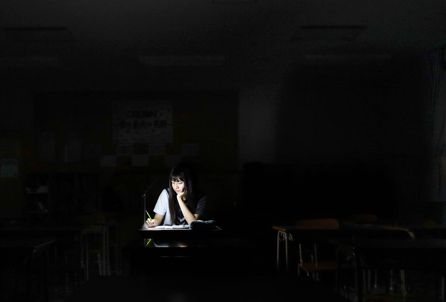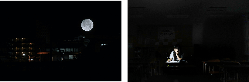 「〈正攻法〉は、一見関連性のない組み合わせに見えて、1日の中でものすごく特徴的で、ムードのある光を放つ、“夕暮れ時”がひとつのテーマ。どこか不安定で、ふっと吹けば消えてしまいそうな、切ない印象が光の性質に関連づけられています。ブレや、人物の表情にも哀愁が漂っていてよいです」(秋山)「2枚の組写真は難しい表現なのですが、それがはまると強烈なメッセージを発する作品になります。〈silent〉はそのハードルを越えてきました。深夜、勉強に励む女の子を主人公にして、ドラマチックな何かを感じさせてくれます。余白を効果的に使い、闇が敷き詰められた静寂さも表しています」(熊切)