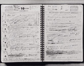 認知症を患いながら逝った、氏の父上が遺した数冊の日記帳のページをカメラで複写したこの連作は、私たちに「写真を眺める」と言うよりは「文を読む」ことを強く促し、その点で視覚的な戸惑いを生じさせずにはおかない。だが、文面を目で追っているうちに、綴られた語の流れや文字のフォルムが崩れ始め、やがて苛立ちからなのか、強い筆圧のストロークが痕跡のように描かれ、ついには空白のページが現れるに至って、私たちはこの日記に、身体や時間といった、写真術における基本的な題材が、確かに存在していることを知る。この複写行為の底には、すべての写真が目指す世界の最奥部にある感覚、つまり、人間存在の有限性と唯一性を肯定するためにシャッターが切られるという、あの切実な感覚とまったく同じものが流れている。