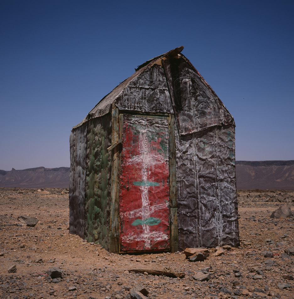 ドラム缶やトタンを切って、叩いて、伸ばして、鮮やかなペンキを塗った家、砂漠から切り出した石を積んだ家、砂漠に自生する植物で組んだ家、砂漠に露出する先カンブリア時代の石を練りこんだ家、小さなブティックさえも色付けされています。