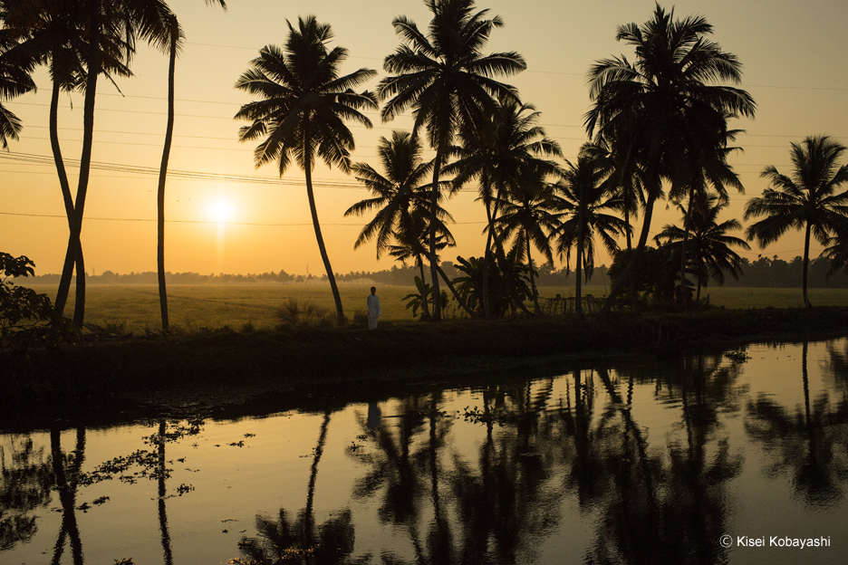 「たとえ動物の鳴き声が届いても、風が樹々を揺すっていても、波が高くても、風景だけでは音が鳴らない。カメラのファインダーを覗きながらそう思うことが、これまでに何度もある。なのに、そこに人が立つと途端に風景が人の方へ傾いていく。感情の続きとなり、音が始まる。体温も風景へ伝わっていく。ミューズを追った南インドへの旅。静かなる音がずっと鳴り続けていた。だから、異国にいながらにして、さらなる異国への旅となった」(小林 紀晴)