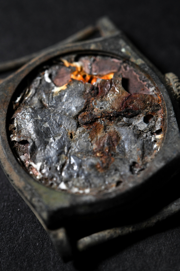 アジア太平洋戦争の記憶を写真に留める仕事の文脈のもと、被爆地ヒロシマに最初、赴いたのは1985年8月6日。広島平和記念公園には原爆忌40周年とあって、内外から多くの新聞、テレビの取材陣が集まっていた。その日から被爆者を訪ねた。井上ひさしの戯曲『父と暮らせば』でも語られているが、地獄を見た人たちからは、亡くなった人たちへの鎮魂、生き残ったことの後ろめたさ、慙愧の心を教えられた。それをもとに閃光と爆風に遭い肉体が消滅した人たちの視覚化に努め、写真集『ヒロシマ万象』(新潮社)を上梓した。原爆禍は写真表現にとって普遍的テーマである。その後、被爆した人たちの衣類や時計、生活用品、学校、地下工場跡などの遺品と遺構を凝視することで、原爆の魔性と罪業を思索してきた。長年にわたる撮影行で、ようやく上木に重ね写真展に漕ぎつけることができた。写真展では、遺品と遺構で構成し、繰り返してはならない原爆禍の記憶を呼び戻したい。