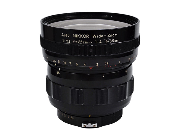 実は日本光学が標準ズームレンズを発表するのは「43~86mm」が初めてではない。昭和36(1961)年に反射望遠レンズ「Reflex-NIKKOR 500mm F5」などと共に「Auto NIKKOR WIDE-ZOOM 35~80mm F2.8~4」というズームレンズを発表している。このズームレンズは、現在標準・広角ズームレンズで一般的に使われている「凹凸2群ズーム」というタイプを世界で初めて採用した斬新な製品であった。