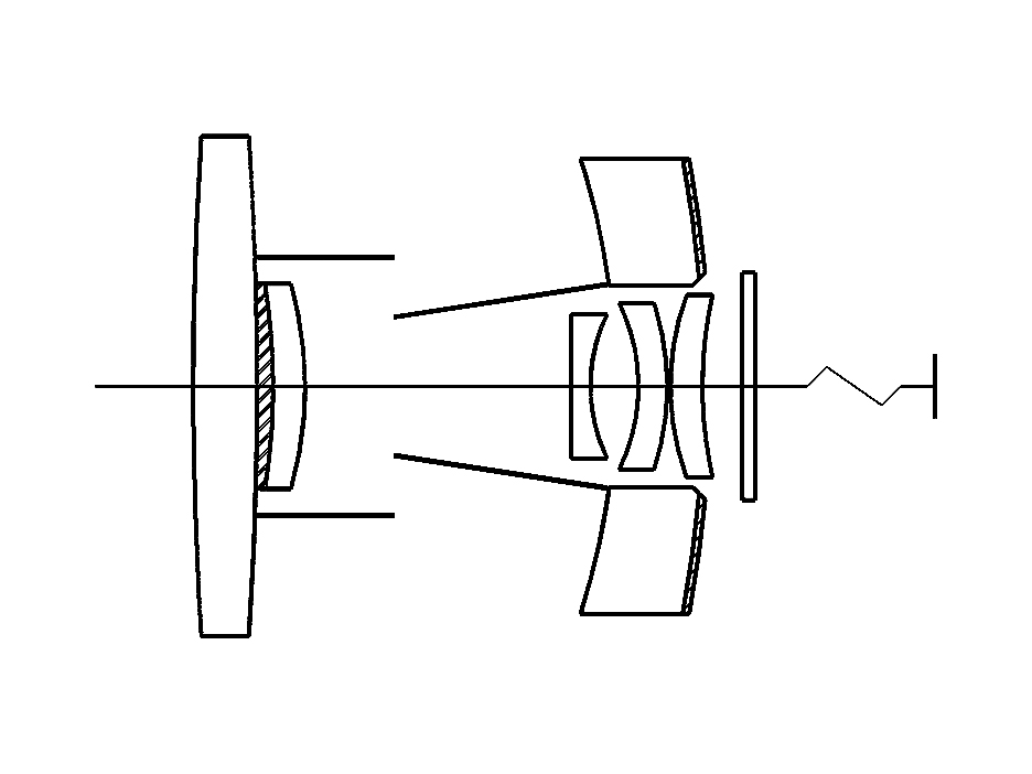 右図3.綱嶋さんの選んだ解:主鏡に孔をあけて、屈折光学系を収める