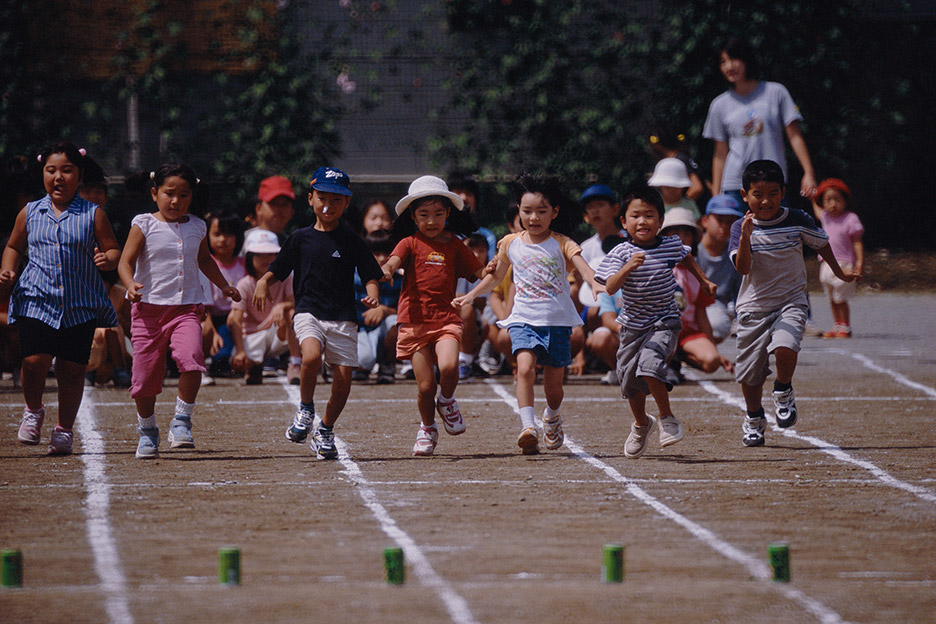 若干アンダー気味の球面収差値、良く補正された色収差およびコマ収差から想像がつくように、センターから周辺まで良好なコントラストを持ち、色の分離が良く、力強い描写をします(ちなみに、現在販売している「<New>Reflex-Nikkor 500mm F8」は、新開発のマルチコーティング(SIC=スーパー・インテグレイテッド・コーティング)を採用しているので、更に抜けが良く、カラーバランスのより良いレンズに改良されています)。作例写真1.と2.は運動会の一シーンですが、手持ち撮影可能な小型・軽量の超望遠レンズはとても重宝します。また、このレンズの最大の特徴である、リング状のボケについても記述しなければなりません。私は自社・他社を問わず、各種レフレックスレンズを使ってきました。しかし、リング状のボケ形状が画面周辺部まで保たれるレンズは、唯一このレンズだけでした。(<補遺>「リング状のボケ形状について」参照)