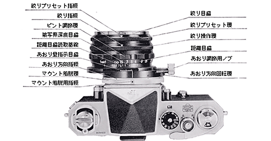 一眼レフレックス小型カメラは速写性、軽便さ、経済性など多くの特長を有するものですが、常時その撮影レンズを通してファインダーを見ることができるという最大の特長を生かして、大型ビューカメラのようにあおり撮影ができるようになったら、たいへん便利なものになるのではなかろうかということは、以前より予想されていたことでした。しかし、スペースが少ないことや、光学系にもいろいろ難しい問題があるために、あおりのきく小型一眼レフレックスカメラというものはまだありませんでした。このたび日本光学では、ニコンF用として、普通の交換レンズと同様な手軽さで使用できて、簡単にあおり撮影ができる世界最初のPC-ニッコールを発表いたしました。(特許出願中)