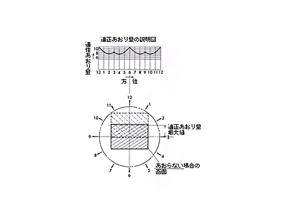 ニコンFへの装着は、一般の交換レンズと同様で、カメラ前面の指標にレンズのマウント着脱指標を一致させて差し込み左に約58度回転させます。まず露出をきめて、その絞りまでレンズのプリセット環を回しておきます。プリセット環はカメラの方向へ押しつけて回します。絞り操作環は開放(F3.5)の側へ回転してファインダーが明るく見やすいようにしておきます。被写体によってカメラの縦横どちらか向きをきめてからファインダー内の碁盤縞をめやすにしてあおりたいと思う方向へレンズを回しておきあおり調節ノブを回転して構図を修正します。つぎにピント調節環を回して被写体にピントを合わせ、絞り操作環を回してプリセットした絞りまで絞ってカメラのシャッタボタンを押します。適正あおり量の最大値は第2図のとおりですが、一応各方向共11ミリ動かせますので、あおる方向の端部に重要な被写体がない場合たとえば空とか地面とか壁面などのときは、適正あおり範囲を超えて使用しても問題ありません。