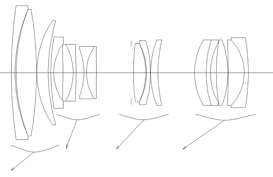 ここまでの話では5群ズームの方が優れているように思いますが、然に非ず。問題は小型化です。4群ズームは広角端が最も小さくなり、3-4群の間隔や総厚も比較的小さく薄くすることが可能なのです。ところが5群ズームはトリプレット構造の3、4、5群が厚肉化するために、小型にならないのです。4群ズームに比べて、押しなべて広角側が長く大きく、望遠端が短めになります。その点でも次世代の43-86mmズーム、35-105mmが4群ズームを選択したことは成功だったのです。