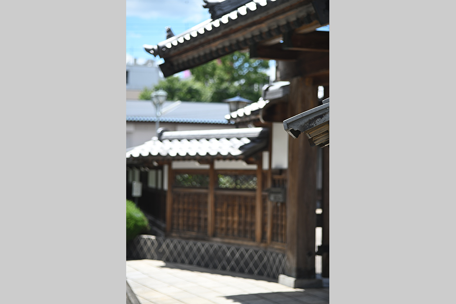 作例7は50mm近傍、開放F4時のボケ味確認用の作例です。あえて厳しい格子柄の背景を選びました。後ボケの破綻がなく、まずまず使えそうです。軸上色収差の影響も少なく良好です。