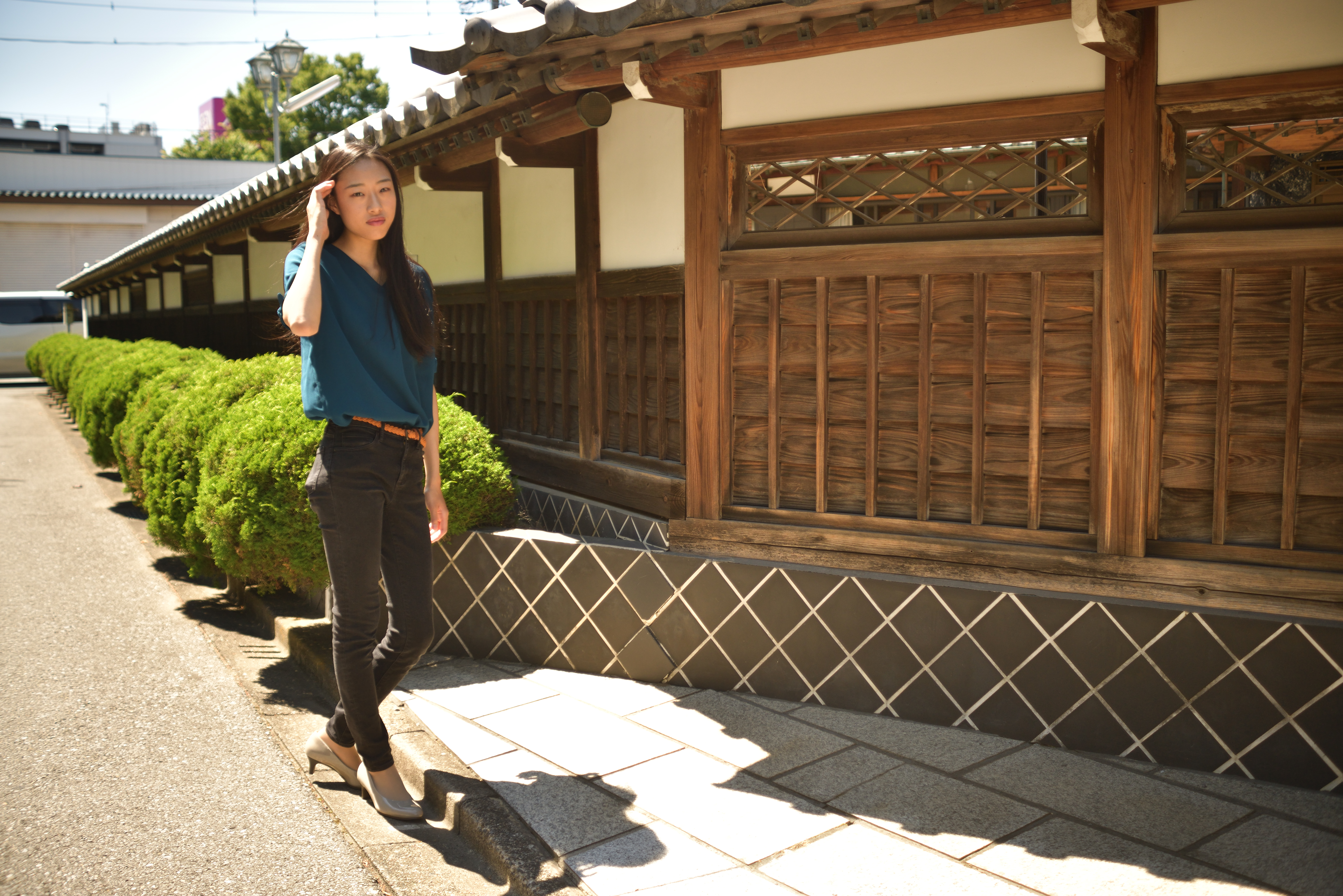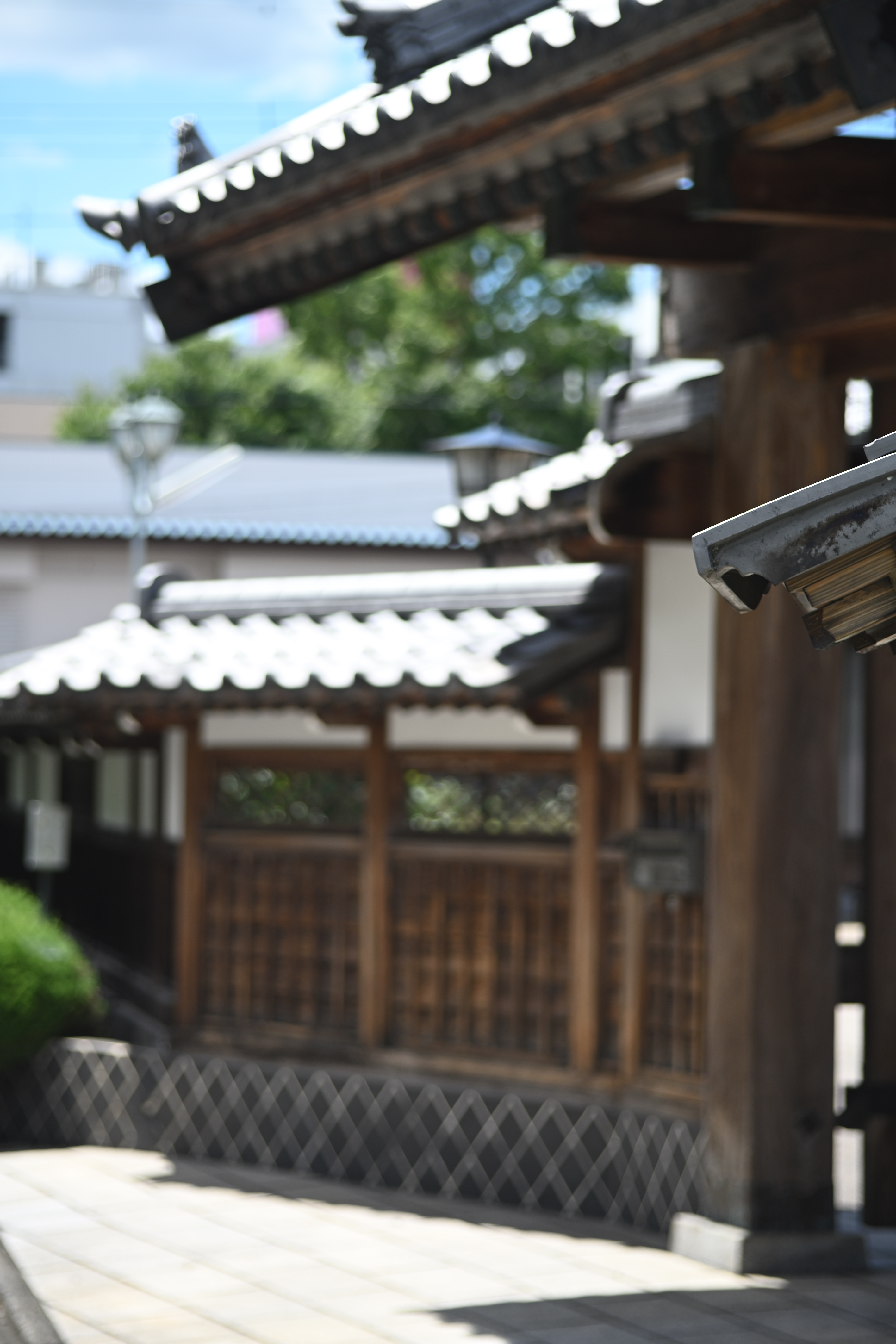 作例7は50mm近傍、開放F4時のボケ味確認用の作例です。あえて厳しい格子柄の背景を選びました。後ボケの破綻がなく、まずまず使えそうです。軸上色収差の影響も少なく良好です。