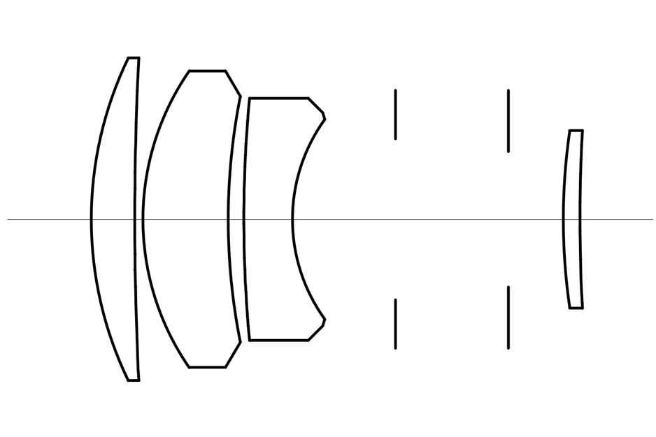 図1のように被写体側から凸レンズ、凸レンズ、凹レンズ、凸レンズを配置したレンズはエルノスタータイプと呼ばれている。凸レンズ、凹レンズ、凸レンズで構成されているトリプレットレンズの先頭凸レンズと凹レンズの間にメニスカス形状の凸レンズを付加することで、F値を明るくしたことにより発生する球面収差とコマ収差を良好に補正できる優れたレンズタイプである。またこのエルノスタータイプの特徴は、前玉の凸レンズ2枚を安価な低屈折率ガラス材料で構成しても良好な性能を発揮することで、松井さんはそれゆえこのタイプを選んだのだろうと想像している。