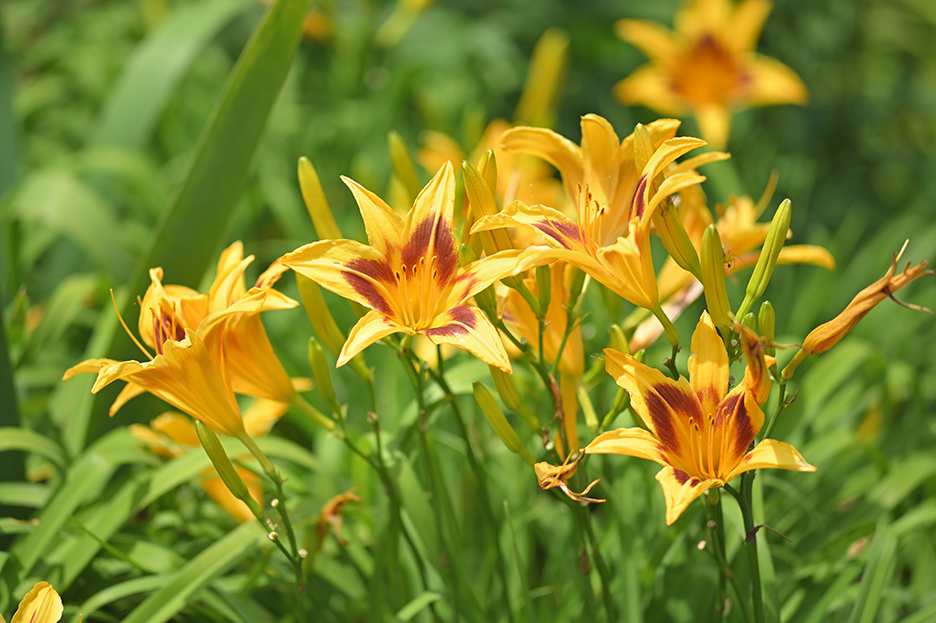 作例4は、ほぼ最至近、開放で撮影したヘメロカリス(キスゲの園芸種)の花である。このレンズの欠点として最短撮影距離が1.5mと遠いことが挙げられ、前回採りあげたマイクロレンズと比較すると残念なところではある。この作例でも、作例3と同様、背景が美しくぼけている。拡大して子細にみるとわずかなフレアがとりまいていたり、前後のぼけが色づいていたりするが、このような順光の写真の場合、開放でも目立つことは少ないだろう。