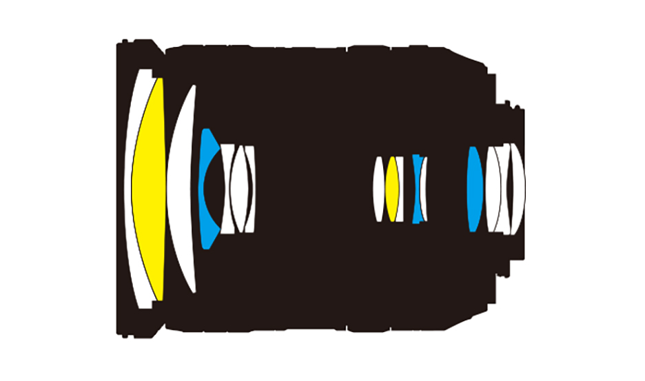 手振れは主に縦方向と横方向にカメラとレンズがチルトすることによって発生する。このカメラのチルトによって、広角系のレンズではチルトした方向に先すぼまりになるパースペクティブが発生し、被写体の歪みが発生するのである。画面周辺でも手振れを抑制するには、この周辺の歪みを逆補正するように、レンズのシフトで歪みを発生させる必要がある。この周辺像ブレ抑制にもっと効果的だったのが、3群後方の接合レンズだったのである。しかしこのレンズをシフトさせると全体に結像性能が低下する問題があった。そこでこのレンズを非球面化することで、手振れ補正時の結像性能劣化を抑えているのである。