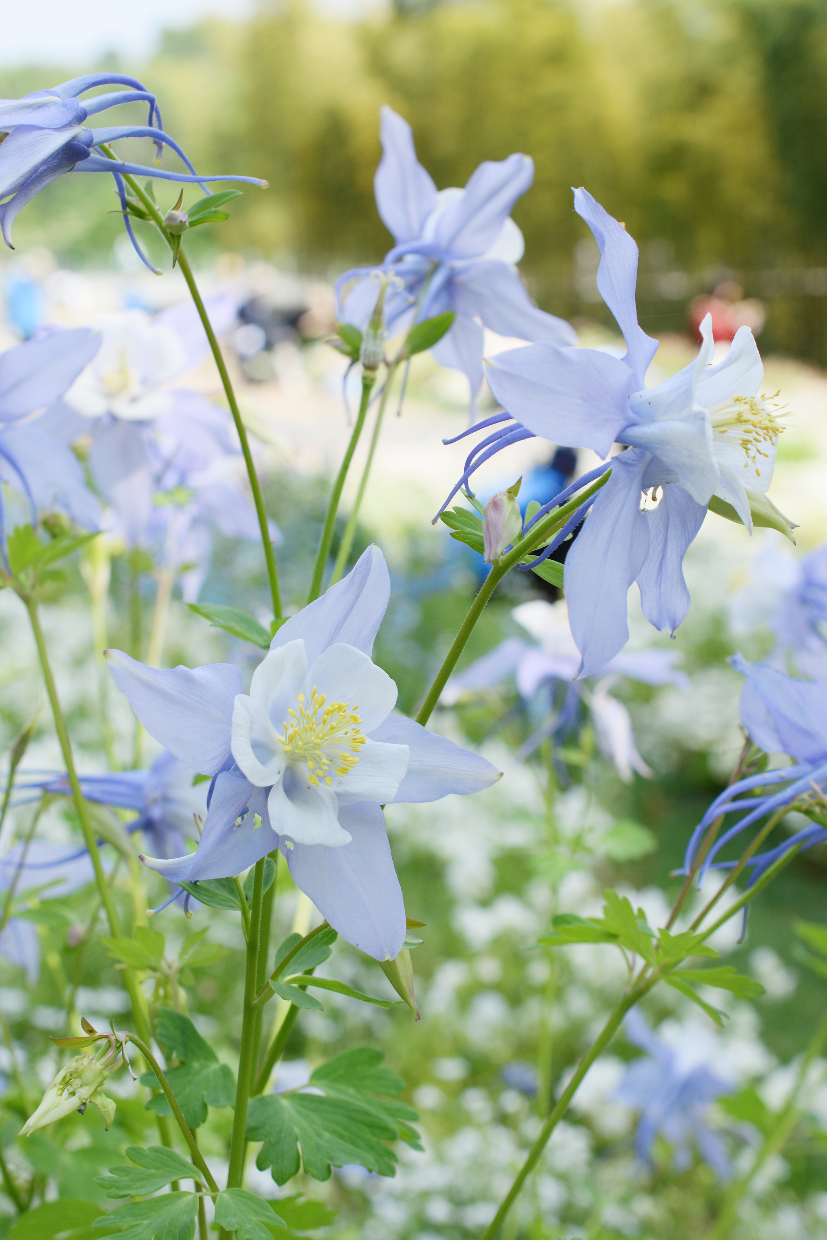 作例6は、さらに寄って撮影したオダマキの花である。オダマキの花の不思議な立体的な姿を映すため、絞りF8に絞り込んで撮影している。オダマキの花は派手なので、見た目は大きく見えるが直径数センチしかない。かなり寄って撮影しているため、F8に絞り込んでも、背景は大きくボケている。