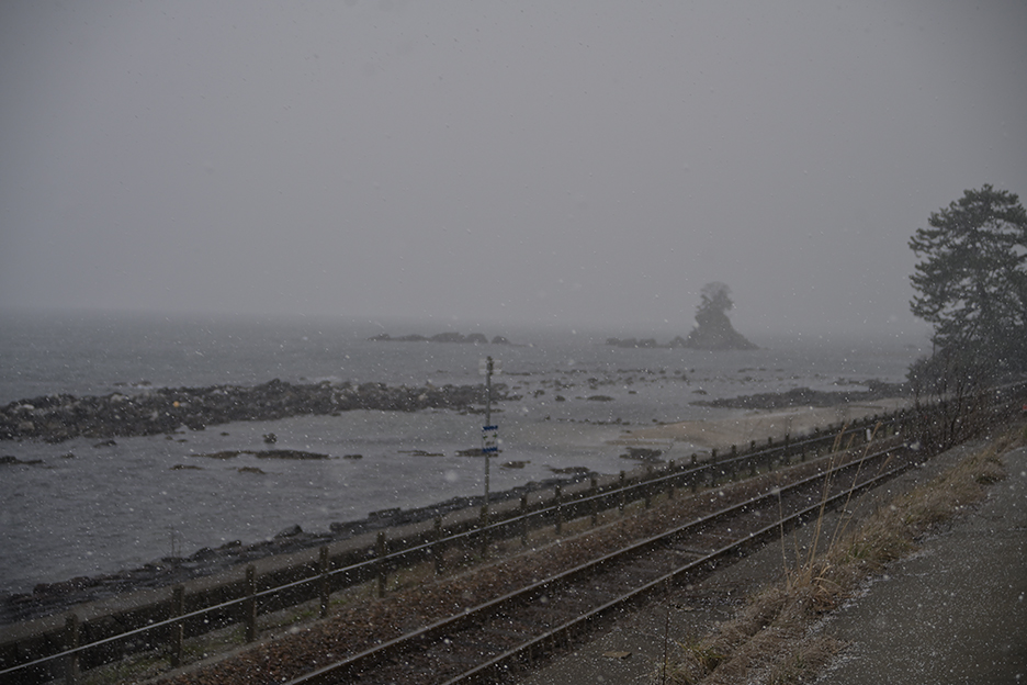 作例7は望遠端50mm無限遠近傍における撮影例です。勿論絞りF4.5の開放における作例です。雨雪が降り薄暗い中、悪条件での撮影例です。ピント位置は線路ですが良好な解像力、コントラストを持っていることが理解できます。遠景はボケていますが、あえて微ボケになる範囲で撮影しました。雰囲気のあるまさに好感の持てる描写ではないでしょうか。