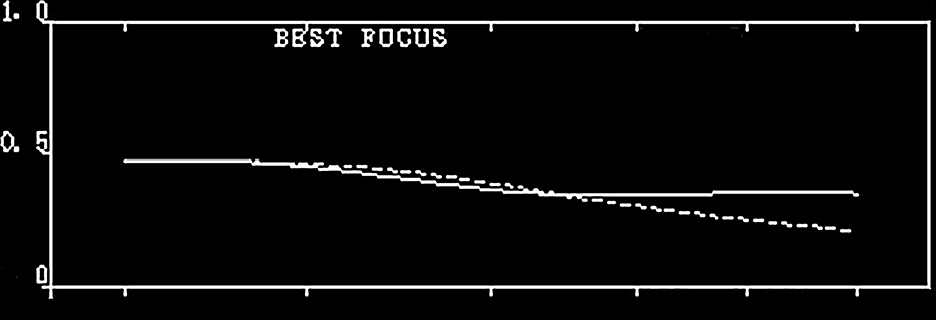 その前に、このレンズの設計基準倍率について少し触れておきます。一般のカメラレンズでは無限遠から-1/30倍の撮影倍率範囲のどこかに設計基準があることが多いです。しかし、元祖マイクロニッコールは異なります。東氏のサイン入り手書き報告書に推奨倍率が書き込まれていました。そこには「撮影倍率は-1/16~-1倍(等倍)で使用」と書かれています。従って、この範囲内に設計基準が存在するはずです。今までニッコール千夜一夜物語における「設計性能と評価」では、無限遠時の性能に重きを置き解説してきました。しかしマイクロレンズの場合、無限遠性能評価を重んじることは、厳密には的外れです。しかし、製品としては無限遠も撮影できるレンズとして発売されていますので、今回は無限遠性能と設計基準と思われる近距離性能、さらに等倍撮影時に至るまでの描写性能、ひいては残存収差に向き合いたいと思います。