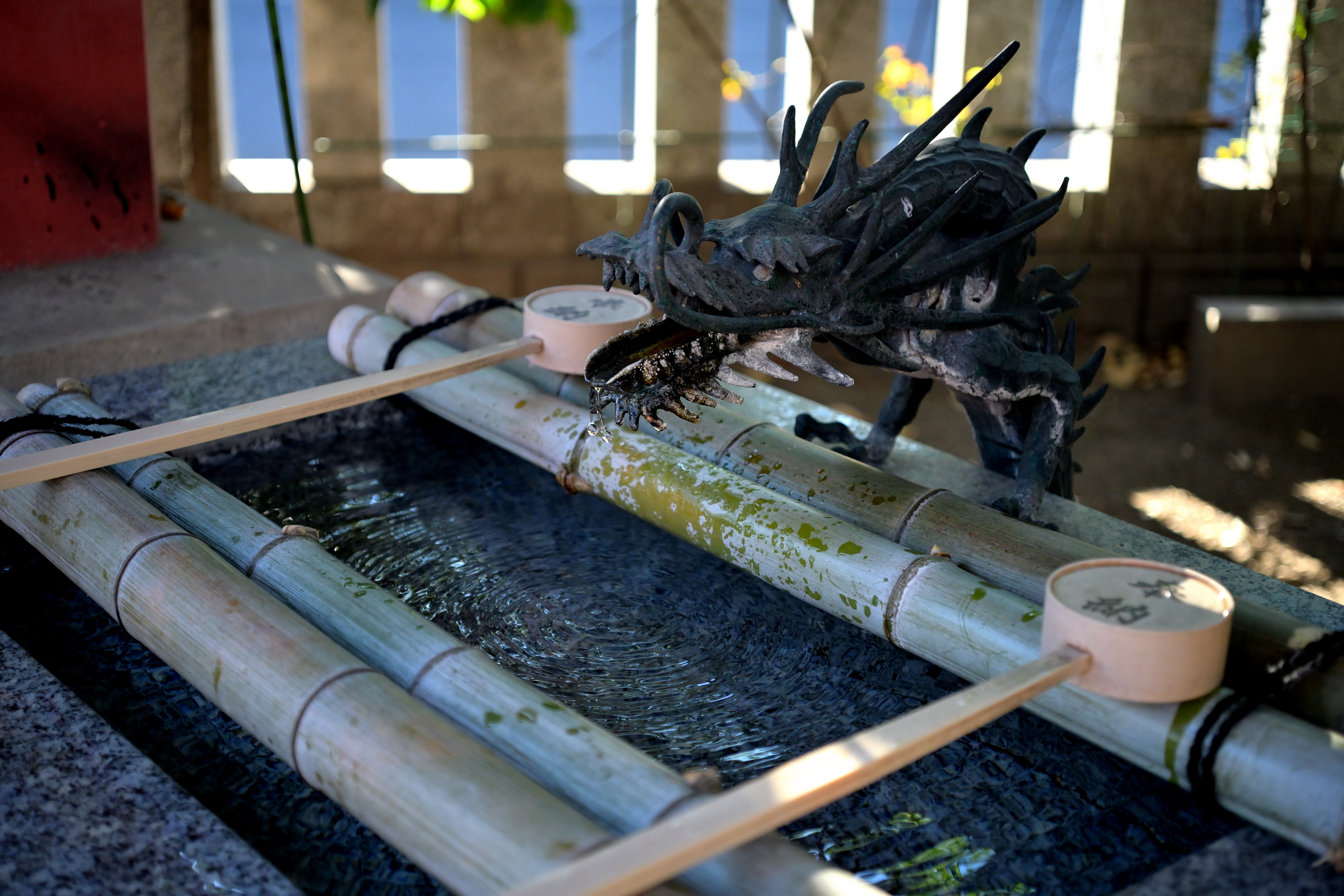 まず作例1は一般的な近距離における撮影例です。撮影距離1mぐらいであったと思います。勿論絞りは開放絞りのF3.5です。ピント位置は竜神様の歯にあります。ピント位置のシャープネスは文句ありませんし、後方に写り込んでいるボケの描写も問題ありません。当初のマイクロニッコールのボケの描写特性は、優れているという評判は聞きませんでした。この作例のように大きな輝度比がある被写体のボケ像は、ボケ味評価としてはかなり過酷です。しかしこのレンズは欠点を晒すことなく難なく良好に再現しています。