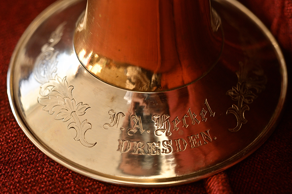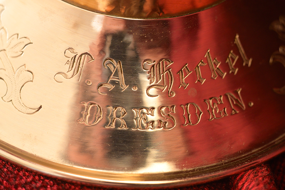 作例9はさらに近づき撮影倍率等倍(-1倍)近傍の描写です。勿論絞りは開放絞りのF3.5です。ピント位置は髭文字(ドイツ文字)彫刻の三文字目の「h」です。この作例も被写体ブレの可能性が低い被写体を撮影しました。等倍拡大してご覧ください。職人の手彫り彫刻の削り癖まで手に取るように分かります。金属部分のうねりや面の仕上げも観察できます。まさにすばらしい高解像力です。